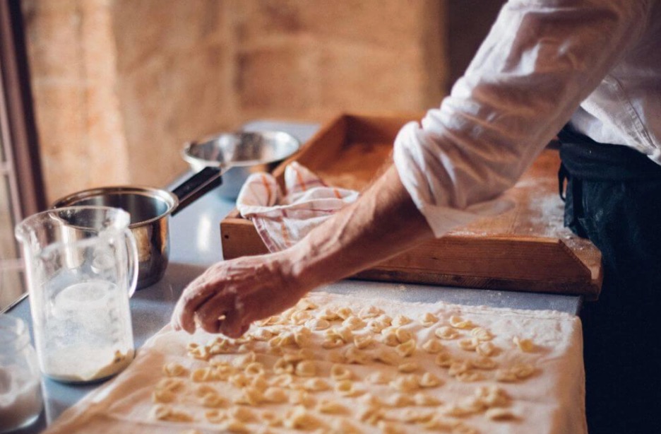 Next, we’ll make our way to a local Apulian farmhouse where we’ll step into a warm, home-like setting furnished with antiques from the chef’s family. At the start, a local chef shares her inspiring journey into natural, earth-focused cuisine. She will then guide us in preparing traditional Apulian dishes such as focaccia, taralli, and orecchiette, using ingredients mostly from her own garden or local sources. The experience ends with a shared meal of our creations, paired with wine and time to ask questions.